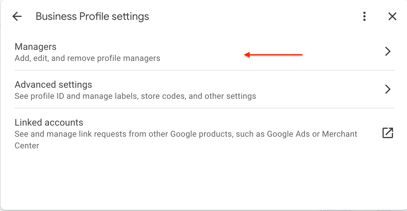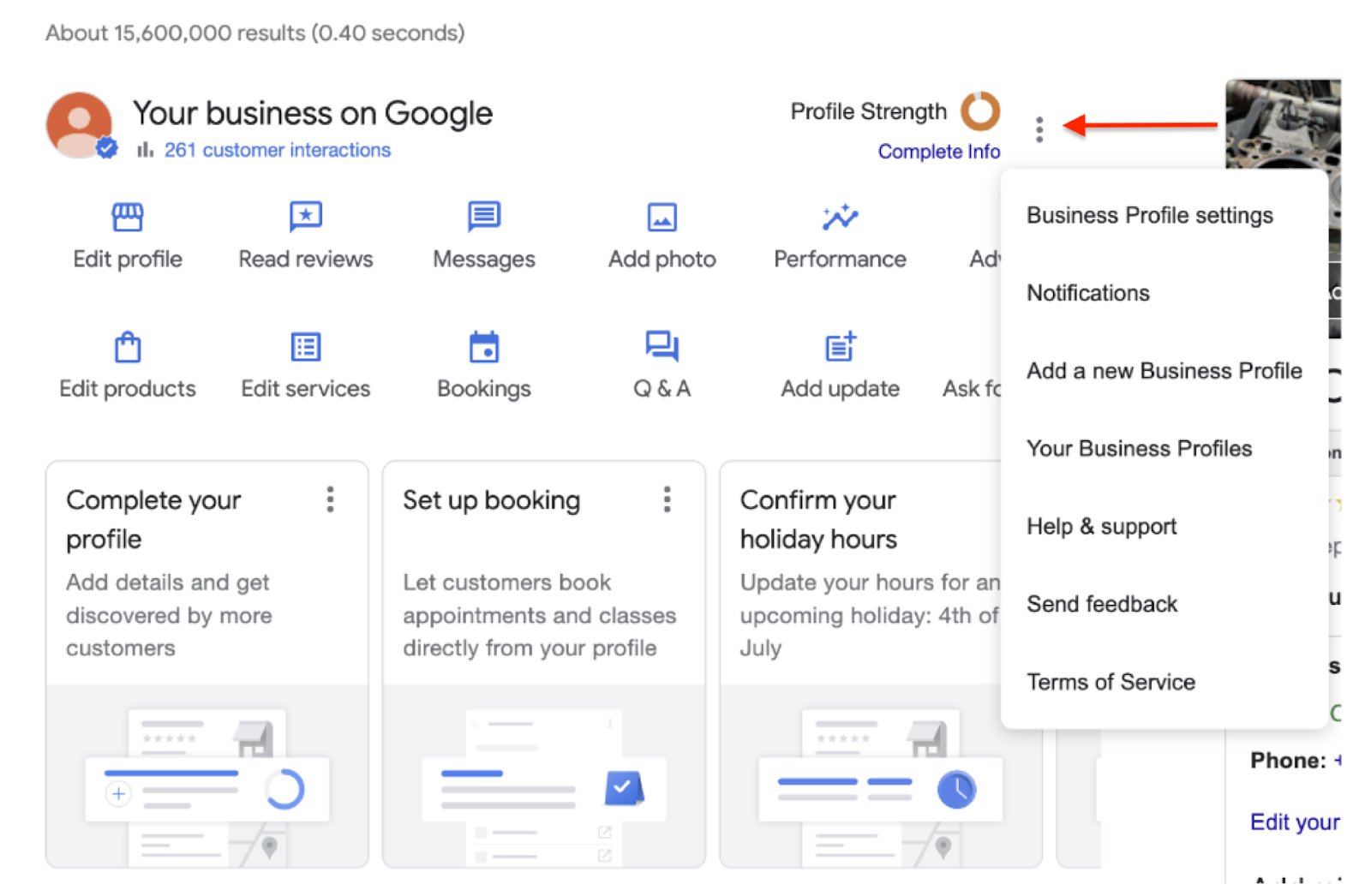 - On the Google Business page, please click the 3 dots as shown below, and go to “Business Profile Settings”