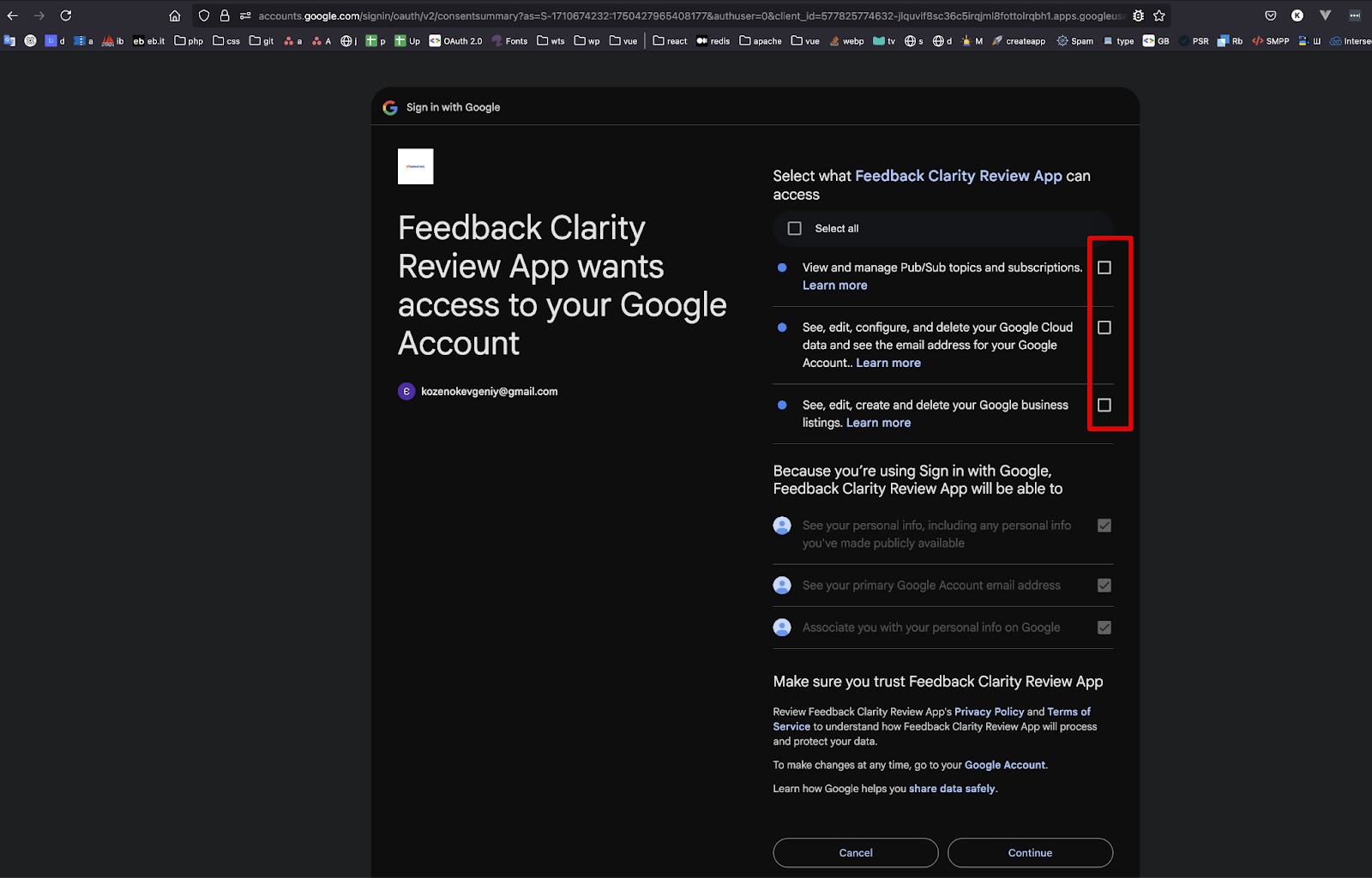- To ensure full functionality, please make sure all permission boxes are selected when signing in.